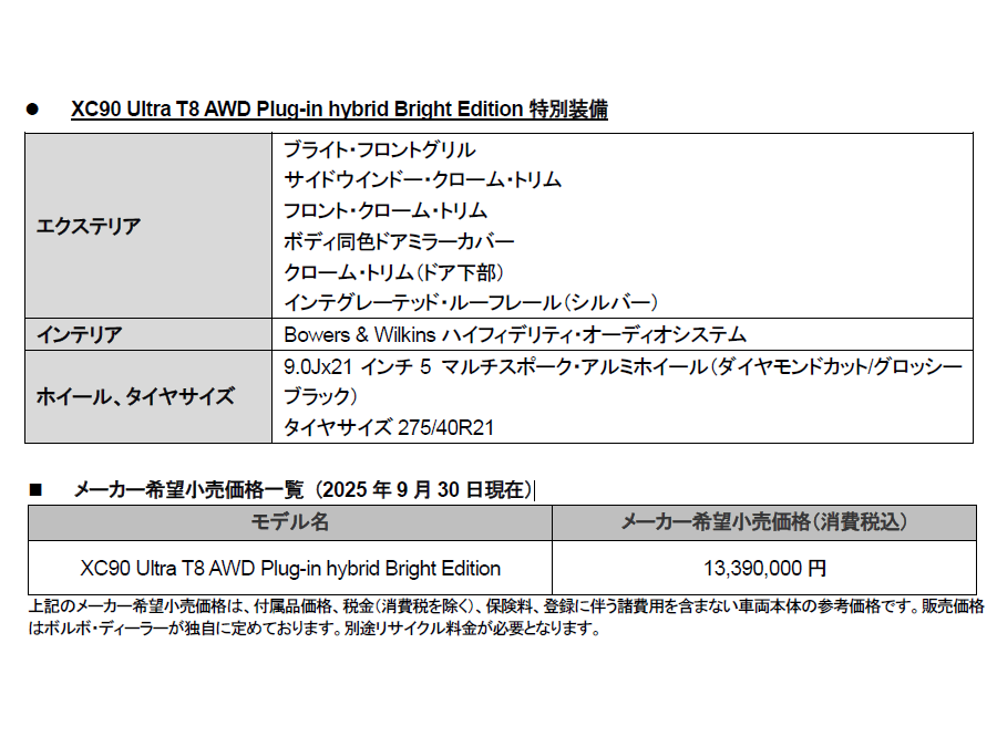 特別限定車XC90 Bright Editionは、ボルボのフラッグシップSUVの最上位である